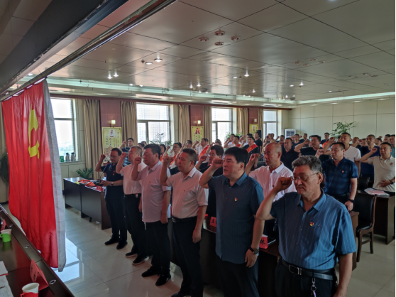 黨委宣傳委員辛建義領(lǐng)誓,全體黨員面對(duì)黨旗重溫入黨誓詞。鏗鏘有力的誓詞讓每一位黨員的心靈再次受到震撼和洗禮。